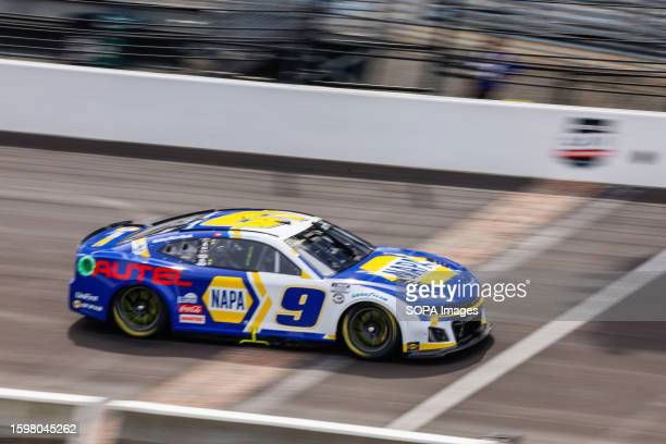 INDIANAPOLIS, INDIANA, UNITED STATES – 2023/08/13: Chase Elliott (#9 Hendrick Motorsports NAPA Auto Parts Chevrolet) races during the Verizon 200 at the Brickyard at Indianapolis Motor Speedway in Indianapolis. (Photo by Jeremy Hogan/SOPA Images/LightRocket via Getty Images)