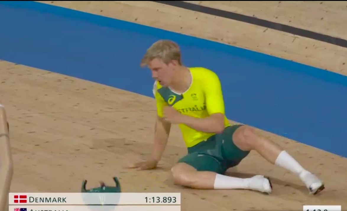 The 25-year-old was working every muscle in his body to stay on the back of the four-man Australian squad. Sadly, he crashed to the ground as his bike disintegrated beneath him. This was a result of his handlebars getting ripped off.