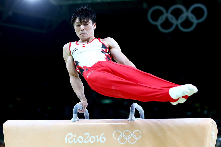 RIO DE JANEIRO, BRAZIL – AUGUST 06: Kohei Uchimura of Japan competes on the pommel horse in the Artistic Gymnastics Men’s Team qualification on Day 1 of the Rio 2016 Olympic Games at Rio Olympic Arena on August 6, 2016 in Rio de Janeiro, Brazil. (Photo by Alex Livesey/Getty Images)
