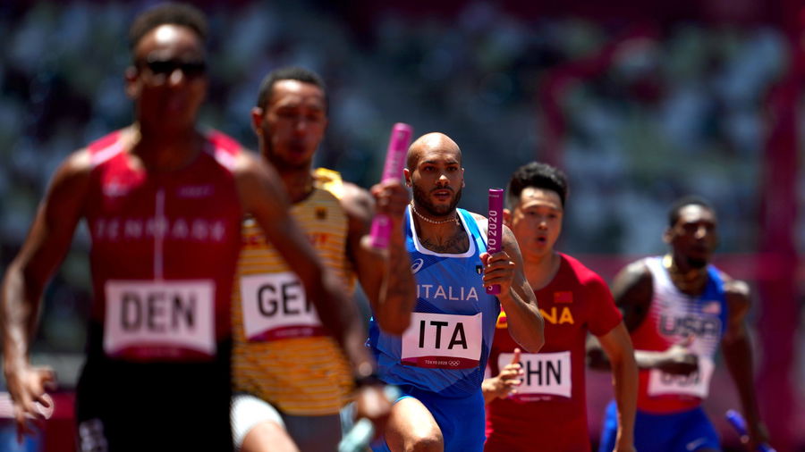 Tokyo 2020 Olympics – Athletics – Men’s 4 x 100m Relay – Round 1 – Olympic Stadium, Tokyo, Japan – August 5, 2021. Lamont Marcell Jacobs of Italy in action REUTERS/Aleksandra Szmigiel