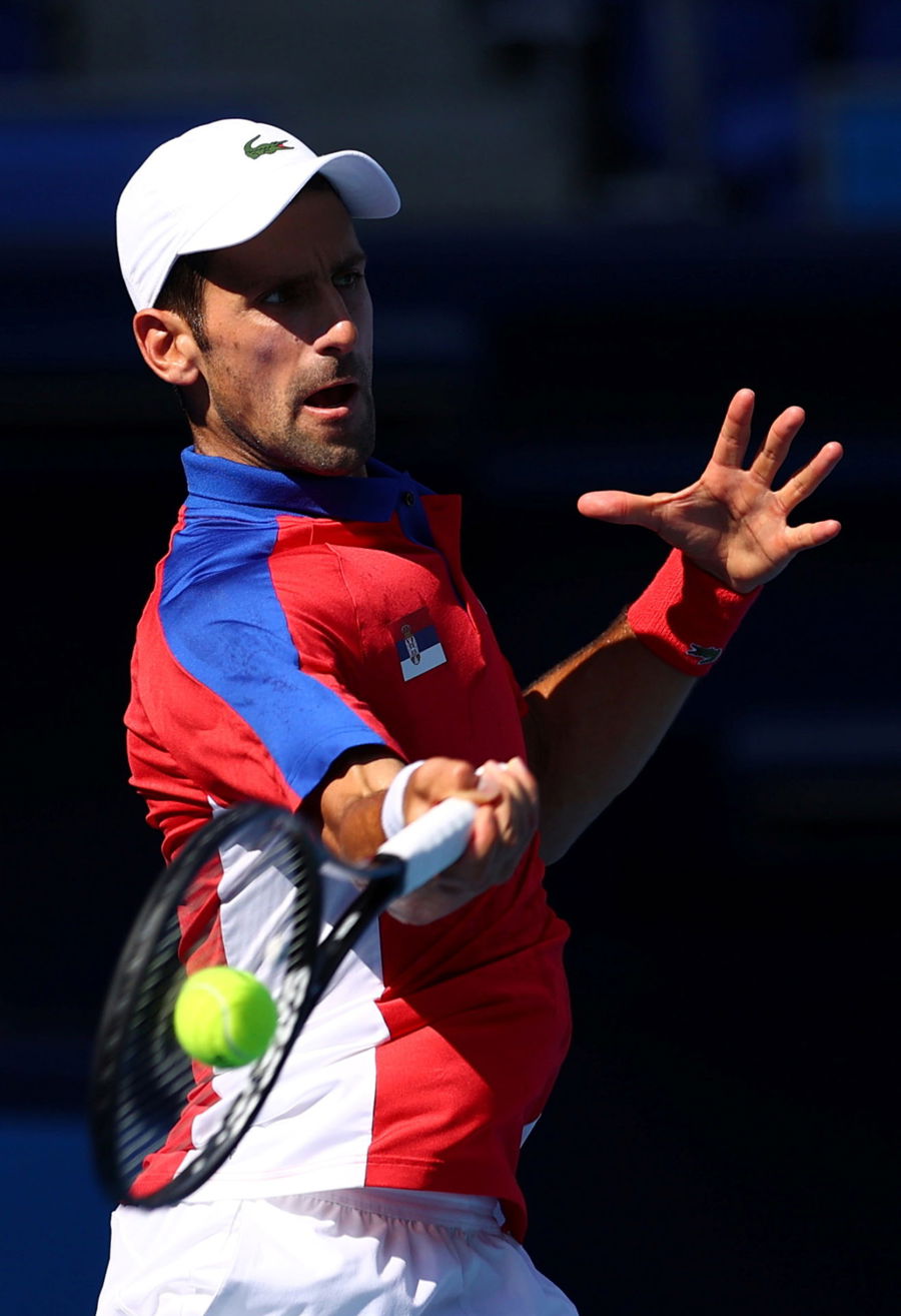 Tokyo 2020 Olympics – Tennis – Men’s Singles – Bronze medal match – Ariake Tennis Park – Tokyo, Japan – July 31, 2021. Novak Djokovic of Serbia in action during his bronze medal match against Pablo Carreno of Spain REUTERS/Edgar Su