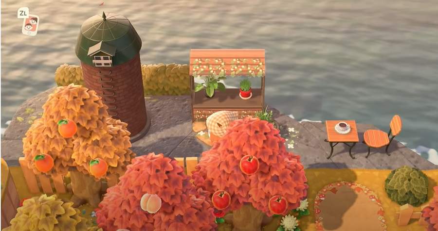 You can also build an orchard right next to the ocean so that you can have a beautiful view while collecting the fruits. With the help of the terraforming feature, you can surround the orchard with water and connect it to the rest of the island with a beautiful bridge. Make sure to add some sitting furniture so that you can capture the beauty of the place while resting.