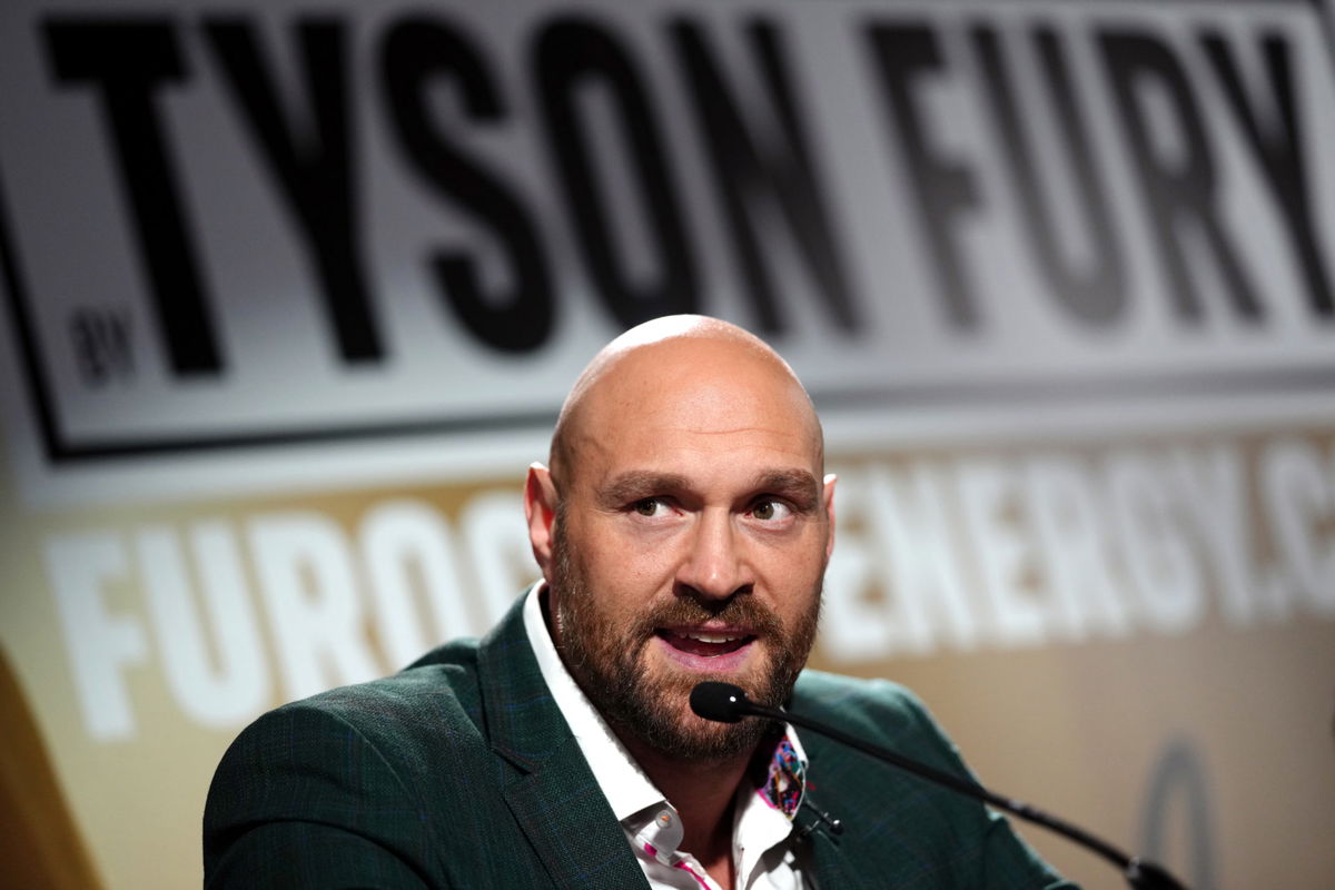 LONDON, ENGLAND – MARCH 01: Tyson Fury speaks to the media during the Tyson Fury v Dilian Whyte press conference at Wembley Stadium on March 01, 2022, in London, England. (Photo by James Chance/Getty Images)