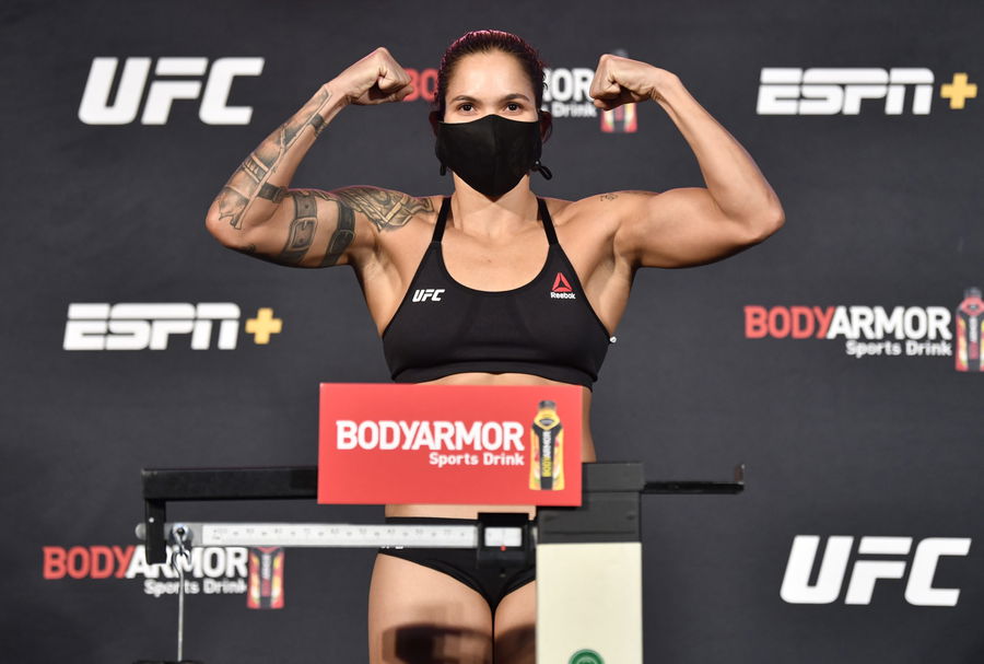 LAS VEGAS, NEVADA – JUNE 05: In this handout image provided by UFC, Amanda Nunes of Brazil poses on the scale during the UFC 250 weigh-in at UFC APEX on June 05, 2020 in Las Vegas, Nevada. (Photo by Jeff Bottari/Zuffa LLC via Getty Images)