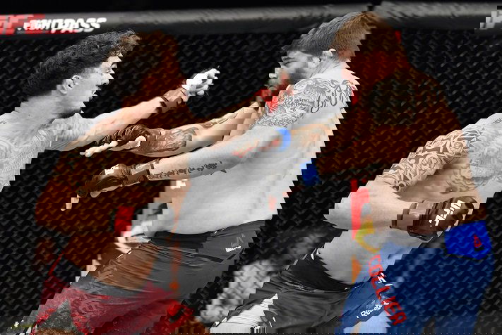 Around the 30-second mark in the first round, both fighters were bouncing lightly on their feet as they had their fists ready. Collier landed in a leg kick, but that did not have any effect on Aspinall. The red-trunk fighter landed a knee and followed it up with a punch as Collier crumpled in a heap.