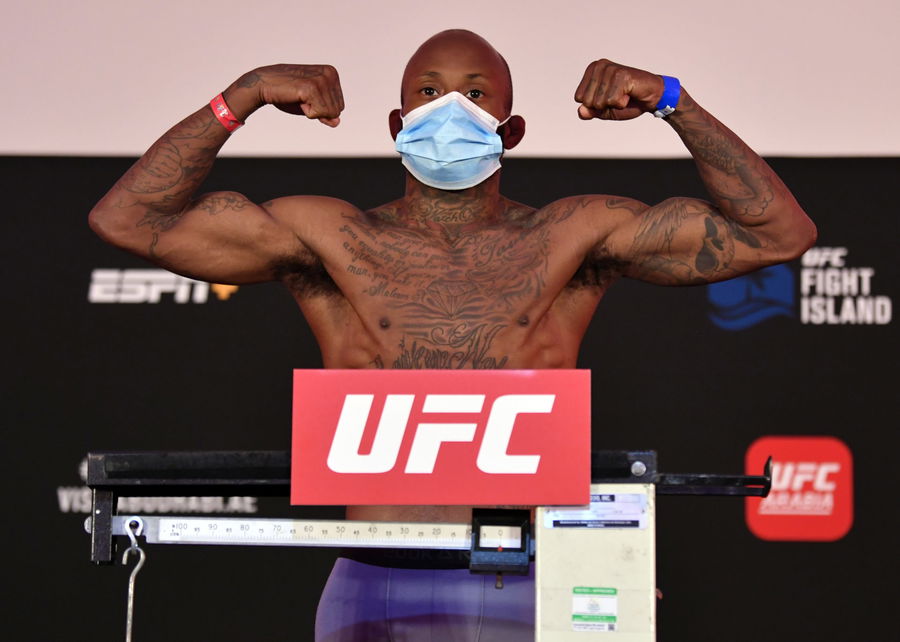 ABU DHABI, UNITED ARAB EMIRATES – JULY 17: Malcolm Gordon of Canada poses on the scale during the UFC Fight Night weigh-in inside Flash Forum on UFC Fight Island on July 17, 2020 in Yas Island, Abu Dhabi, United Arab Emirates. (Photo by Jeff Bottari/Zuffa LLC via Getty Images)