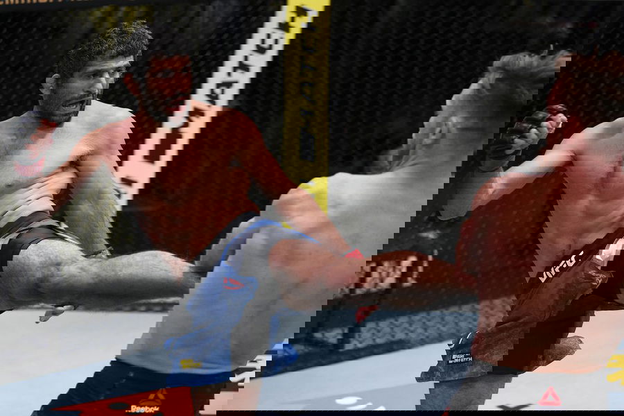 At the two-minute mark, the Iranian fighter landed a knee to his opponent’s face. He followed it up with a repeat strike before unleashing two haymakers, thus drawing his opponent forward into a clinch.