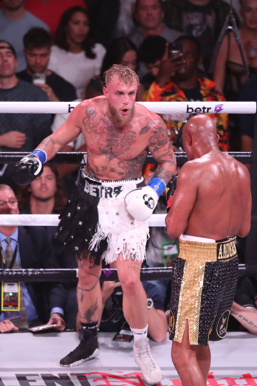 October 29, 2022, Glendale, Arizona, United States: GLENDALE, AZ – OCTOBER 29: Jake Paul and Anderson Silva meet in the boxing ring for their Cruiserweight bout at Showtime s Paul vs Silva PPV Event at the Desert Diamond Arena on October 29, 2022 in Glendale, Arizona, United States. Glendale United States – ZUMAp175 20221029_zsa_p175_068 Copyright: xAlejandroxSalazarx