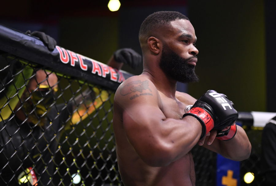 LAS VEGAS, NEVADA – MAY 30: Tyron Woodley battles Gilbert Burns in a welterweight bout during the UFC Fight Night event at UFC APEX on May 30, 2020 in Las Vegas, Nevada. (Photo by Jeff Bottari/Zuffa LLC)