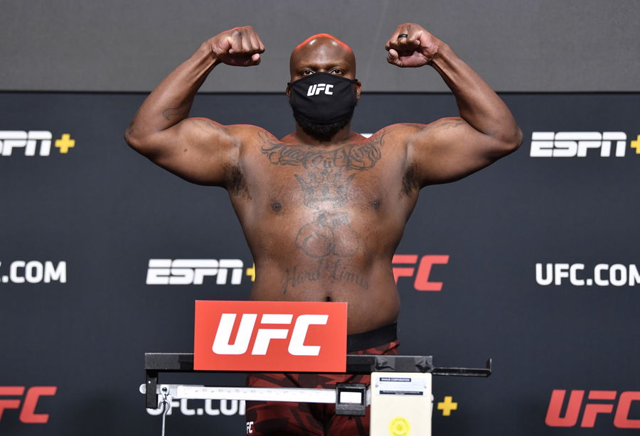 LAS VEGAS, NEVADA – FEBRUARY 19: Derrick Lewis poses on the scale during the UFC weigh-in at UFC APEX on February 19, 2021 in Las Vegas, Nevada. (Photo by Chris Unger/Zuffa LLC)