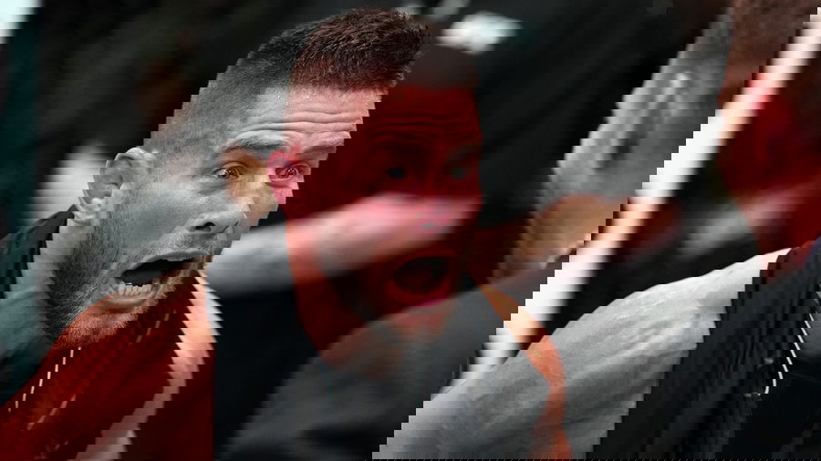 LAS VEGAS, NEVADA – JUNE 17: Pat Sabatini reacts after his victory over Lucas Almeida of Brazil in a featherweight fight during the UFC Fight Night event at UFC APEX on June 17, 2023 in Las Vegas, Nevada. (Photo by Chris Unger/Zuffa LLC via Getty Images)