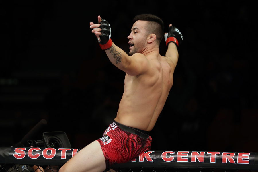 HALIFAX, NS – OCTOBER 4: Pedro Munhoz of Brazil celebrates after defeating Jerrod Sanders in their bantamweight bout at the Scotiabank Centre on October 4, 2014 in Halifax, Nova Scotia, Canada. (Photo by Nick Laham/Zuffa LLC/Zuffa LLC via Getty Images)