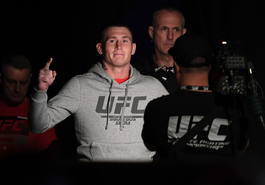 LONDON, ENGLAND – MARCH 15: Darren Till of United Kingdom prepares to step on the scale during the UFC Fight Night weigh-in at The O2 on March 15, 2019 in London, England. (Photo by Jeff Bottari/Zuffa LLC/Zuffa LLC via Getty Images)