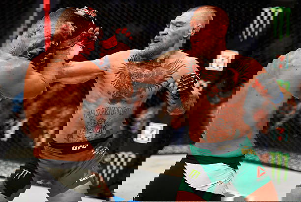 LAS VEGAS, NV – AUGUST 20: (R-L) Conor McGregor of Ireland punches Nate Diaz in their welterweight bout during the UFC 202 event at T-Mobile Arena on August 20, 2016 in Las Vegas, Nevada. (Photo by Josh Hedges/Zuffa LLC/Zuffa LLC via Getty Images)