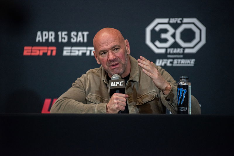 LAS VEGAS, NV – March 4: Dana White meets with the press following the fights at T-Mobile Arena for UFC 285 -Jones vs Gane : Event on March 4, 2023 in Las Vegas, NV, United States.(Photo by Louis Grasse/PxImages/Icon Sportswire via Getty Images)