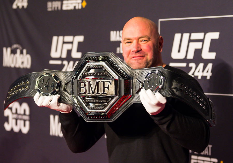November 1, 2019 – New York, New York, USA: DANA WHITE and BMF belt during UFC 244 Weigh-in. UFC 244: Weigh-in – ZUMAs277 20191101_sha_s277_524 Copyright: xJasonxSilvax
