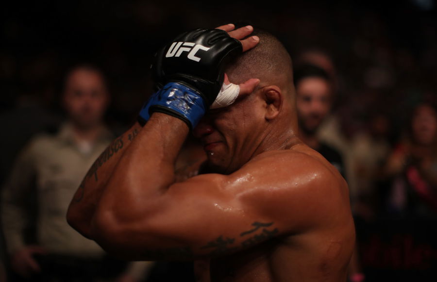 LAS VEGAS, NV – JULY 07: Gilbert Burns of Brasil reacts to his loss after his lightweight fight during the UFC 226 event inside T-Mobile Arena on July 7, 2018 in Las Vegas, Nevada. (Photo by Christian Petersen/Zuffa LLC/Zuffa LLC via Getty Images)
