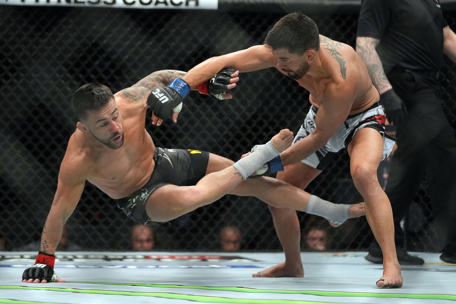 MMA: UFC 269-Munhoz vs Cruz, Dec 11, 2021 Las Vegas, Nevada, USA Pedro Munhoz moves in with a kick against Dominick Cruz during UFC 269 at T-Mobile Arena. Mandatory Credit: Stephen R. Sylvanie-USA TODAY Sports, 11.12.2021 18:15:09, 17341794, NPStrans, T-Mobile Arena, Pedro Munhoz, Dominick Cruz, MMA PUBLICATIONxINxGERxSUIxAUTxONLY Copyright: xStephenxR.xSylvaniex 17341794