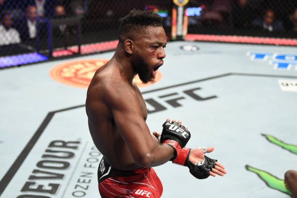 HOUSTON, TEXAS – AUGUST 07: Manel Kape of Angola reacts after defeating Ode’ Osbourne in their flyweight bout during the UFC 265 event at Toyota Center on August 07, 2021 in Houston, Texas. (Photo by Josh Hedges/Zuffa LLC)