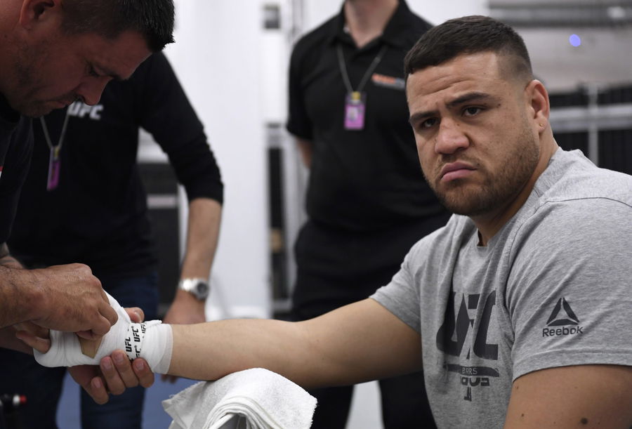 MELBOURNE, AUSTRALIA – OCTOBER 06: Tai Tuivasa of Australia has his hands wrapped prior to his fight during the UFC 243 event at Marvel Stadium on October 06, 2019 in Melbourne, Australia. (Photo by Mike Roach/Zuffa LLC/Zuffa LLC via Getty Images)
