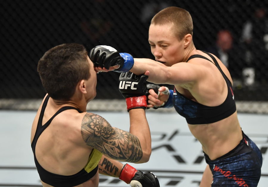 ABU DHABI, UNITED ARAB EMIRATES – JULY 12: Rose Namajunas battles Jessica Andrade in their strawweight fight during the UFC 251 event at Flash Forum on UFC Fight Island on July 12, 2020 on Yas Island, Abu Dhabi, United Arab Emirates. (Photo by Jeff Bottari/Zuffa LLC)