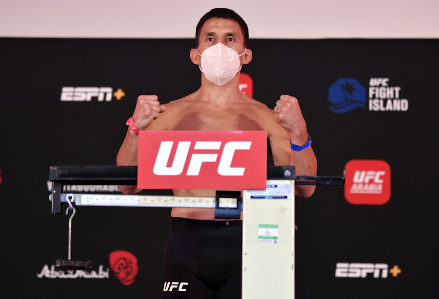 ABU DHABI, UNITED ARAB EMIRATES – JULY 17: Joseph Benavidez poses on the scale during the UFC Fight Night weigh-in inside Flash Forum on UFC Fight Island on July 17, 2020, in Yas Island, Abu Dhabi, United Arab Emirates. (Photo by Jeff Bottari/Zuffa LLC via Getty Images)