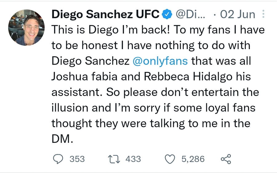 With Sanchez having disagreements with Fabia and UFC, he seeks to resume his MMA career with a new promotion. While this is great, something funny is going on with his Twitter account.