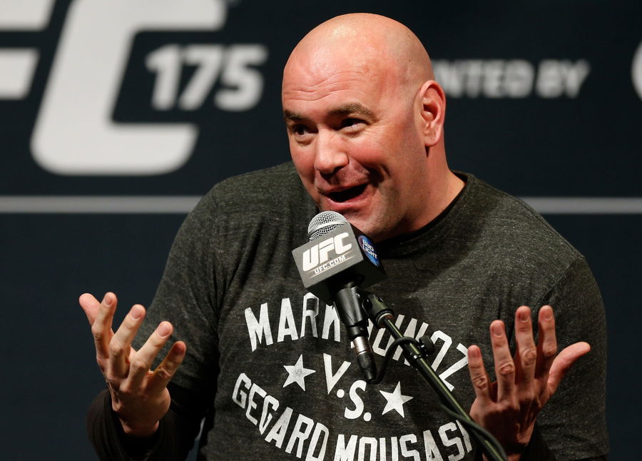 LAS VEGAS, NV – MAY 23: UFC president Dana White interacts with fans and media during the UFC press conference at the MGM Grand Garden Arena on May 23, 2014 in Las Vegas, Nevada. (Photo by Josh Hedges/Zuffa LLC/Zuffa LLC via Getty Images)