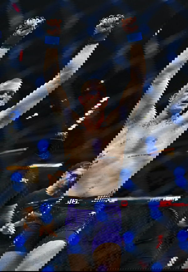UFC Fight Night in Doha : Ian Machado Garry v Belal Muhammad Ian Machado Garry of Ireland reacts after a victory against Belal Muhammad of Palestine in a welterweight bout fight during the UFC Fight Night event at Ali Bin Hamad Al Attiyah Arena ABHA Arena in Doha, Qatar. on November 22, 2025. DOHA Qatar Copyright: xNOUSHADxTHEKKAYILx