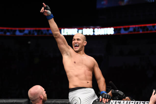WICHITA, KS – MARCH 09: Junior Dos Santos of Brazil celebrates after defeating Derrick Lewis in their heavyweight bout during the UFC Fight Night event at Intrust Bank Arena on March 9, 2019, in Wichita, Kansas. (Photo by Josh Hedges/Zuffa LLC/Zuffa LLC via Getty Images)
