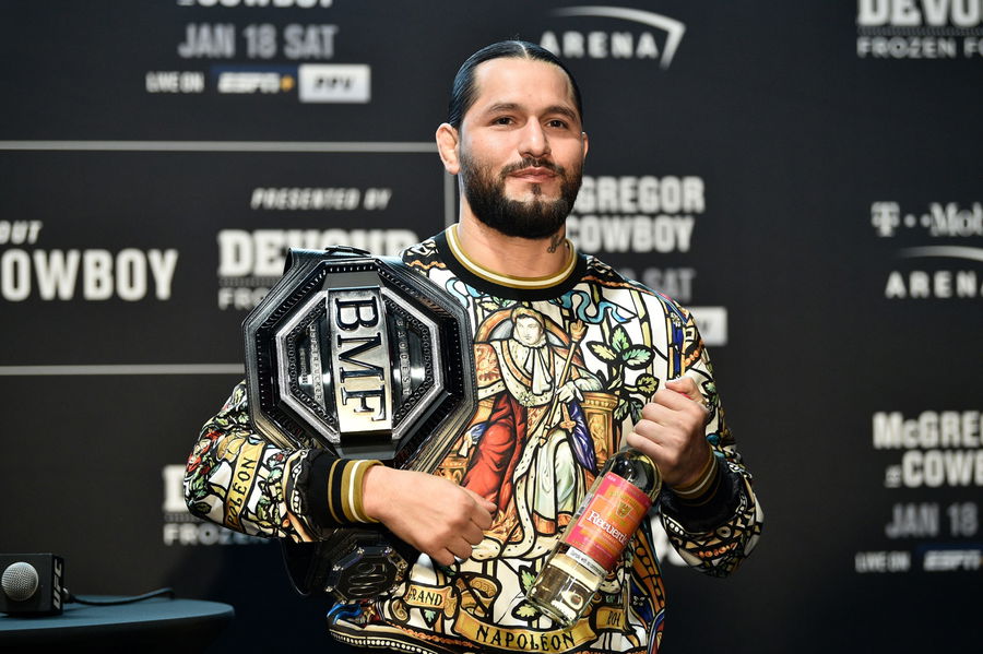 LAS VEGAS, NV – JANUARY 16: UFC welterweight Jorge Masvidal interacts with the media during the UFC 246 Ultimate Media Day at UFC APEX on January 16, 2020 in Las Vegas, Nevada. (Photo by Chris Unger/Zuffa LLC via Getty Images)