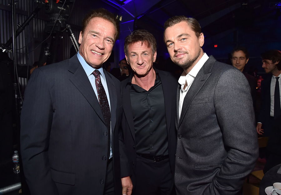 LOS ANGELES, CA – JANUARY 06: Arnold Schwarzenegger, Leonardo DiCaprio and Sean Penn attend the 7th Annual Sean Penn & Friends HAITI RISING Gala benefiting J/P Haitian Relief Organization on January 6, 2018 in Hollywood, California. (Photo by Kevin Mazur/Getty Images for J/P HRO Gala)