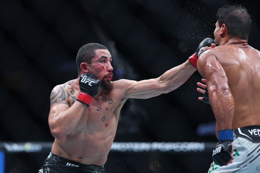 ANAHEIM, CALIFORNIA – FEBRUARY 17: Robert Whittaker of New Zealand punches Paulo Costa of Brazil in their middleweight fight during UFC 298 at Honda Center on February 17, 2024 in Anaheim, California. (Photo by Sean M. Haffey/Getty Images)