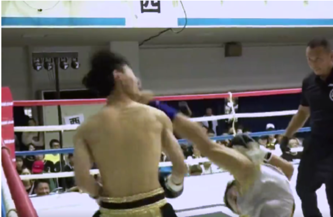 The elusive rolling-thunder kick stands out as one of the most impressive forms of knockout. A video on Twitter showed two fighters in a clinch, with one trying to pin his opponent to the ropes. His opponent broke free and stepped forward and to the left, creating space between the two, and threw a right hook, which missed its mark. The first fighter countered as his opponent ducked out of his way.