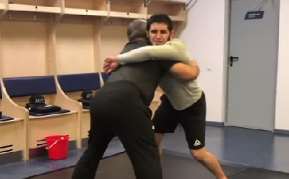 Khabib Nurmagomedov took to his Instagram account and posted a video of his father, Abdulmanap grappling with Islam Makhachev in Greco-Roman style. In the clip, the former Russian army veteran is able to lift and trip Makhachev pretty easily and slams him on his back.