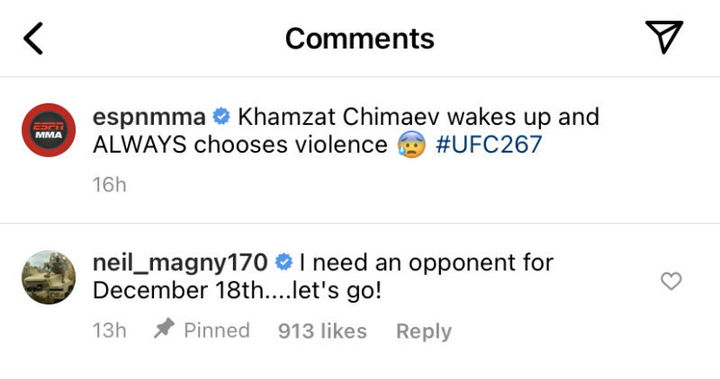 His charisma and thirst for violence left everyone amazed. Following the fight, ESPN MMA made a post on Instagram that piqued the interest of a possible opponent for the ‘Borz’. Neil “The Haitian Sensation” Magny. The post celebrated Chimaev’s statement win, but it seems Neil Magny wasn’t particularly phased by the clinic put on by the Russian-Swedish fighter.