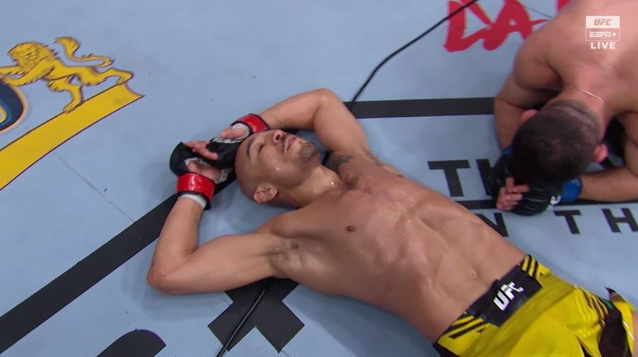 Jose Aldo had some success in the beginning. His striking looked clean, and he landed some hard knees up the middle. But, Dvalishvili’s grueling style proved to be a little too much for the ‘King of Rio’. The Georgian attempted 16 takedowns; however, he failed in every single one of them.
