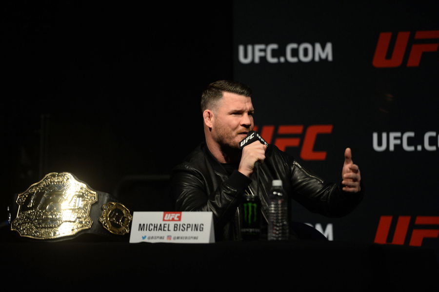 MMA: UFC 209-Weigh Ins, Mar 3, 2017 Las Vegas, NV, USA Middleweight champion Michael Bisping speaks to the media to promote his bout against Georges St-Pierre not pictured prior to weigh ins for UFC 209 at T-Mobile Arena. Mandatory Credit: Joe Camporeale-USA TODAY Sports, 03.03.2017 14:33:45, 9913953, T-Mobile Arena, Georges St-Pierre, Michael Bisping, MMA PUBLICATIONxINxGERxSUIxAUTxONLY Copyright: xJoexCamporealex 9913953