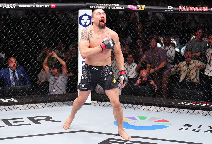 RIYADH, SAUDI ARABIA – JUNE 22: Robert Whittaker of New Zealand reacts after his victory against Ikram Aliskerov of Russia in a middleweight fight during the UFC Fight Night event at Kingdom Arena on June 22, 2024 in Riyadh, Saudi Arabia. (Photo by Chris Unger/Zuffa LLC via Getty Images)