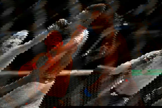 MELBOURNE, AUSTRALIA – OCTOBER 06: Robert Whittaker and Israel Adesanya fight in the Middleweight title bout during UFC 243 at Marvel Stadium on October 06, 2019 in Melbourne, Australia. (Photo by Darrian Traynor/Getty Images)