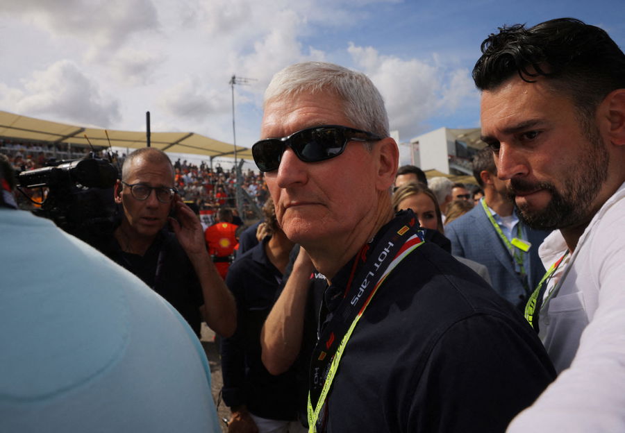 Formula One F1 – United States Grand Prix – Circuit of the Americas, Austin, Texas, U.S. – October 23, 2022 Tim Cook, the CEO of Apple is seen before the race REUTERS/Brian Snyder