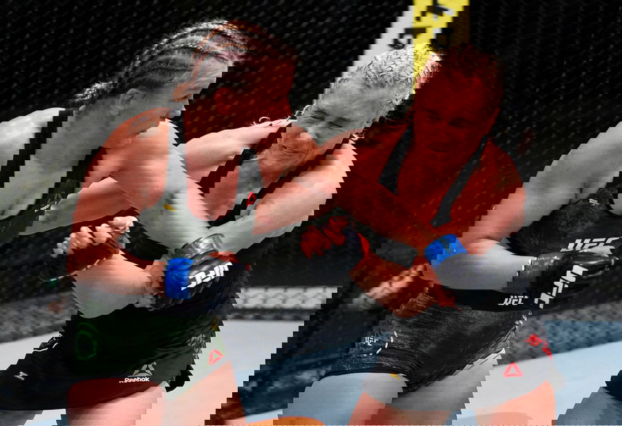 LAS VEGAS, NEVADA – SEPTEMBER 12: (L-R) Sijara Eubanks punches Julia Avila in a bantamweight fight during the UFC Fight Night event at UFC APEX on September 12, 2020 in Las Vegas, Nevada. (Photo by Jeff Bottari/Zuffa LLC)