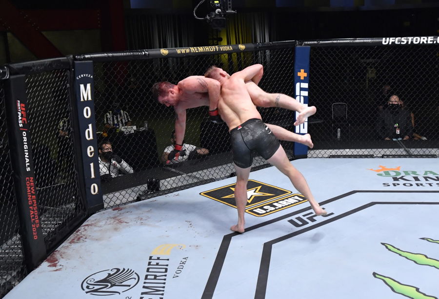 LAS VEGAS, NEVADA – OCTOBER 31: (R-L) Jason Witt prepares to slam Cole Williams in a welterweight bout during the UFC Fight Night event at UFC APEX on October 31, 2020 in Las Vegas, Nevada. (Photo by Jeff Bottari/Zuffa LLC)