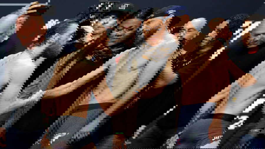 LAS VEGAS, NEVADA – JANUARY 17: Welterweight fighters Conor McGregor (L) and Donald Cerrone shake hands during a ceremonial weigh-in for UFC 246 at Park Theater at Park MGM on January 17, 2020 in Las Vegas, Nevada. (Photo by Steve Marcus/Getty Images)