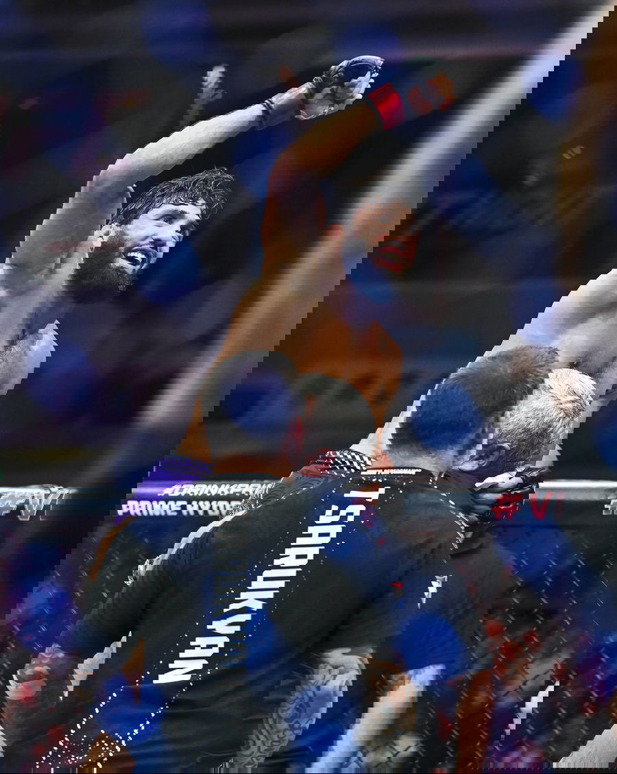 UFC Fight Night in Doha : Dan Hooker v Arman Tsarukyan Arman Tsarukyan of Georgia reacts after a victory against Dan Hooker of New Zealand in a lightweight bout fight during the UFC Fight Night event at Ali Bin Hamad Al Attiyah Arena ABHA Arena in Doha, Qatar. on November 22, 2025. DOHA Qatar Copyright: xNOUSHADxTHEKKAYILx