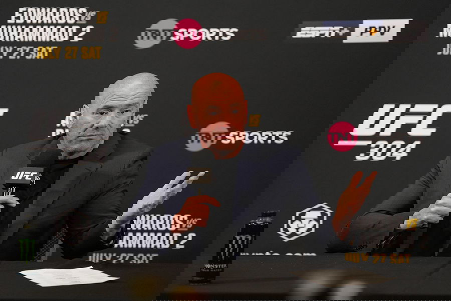 UFC CEO DANA WHITE with post event media during the UFC 304 event at Co-op Etihad Campus, SportCity, Manchester, England on the 27 July 2024. Copyright: xAndyxRowlandx PMI-6350-0002