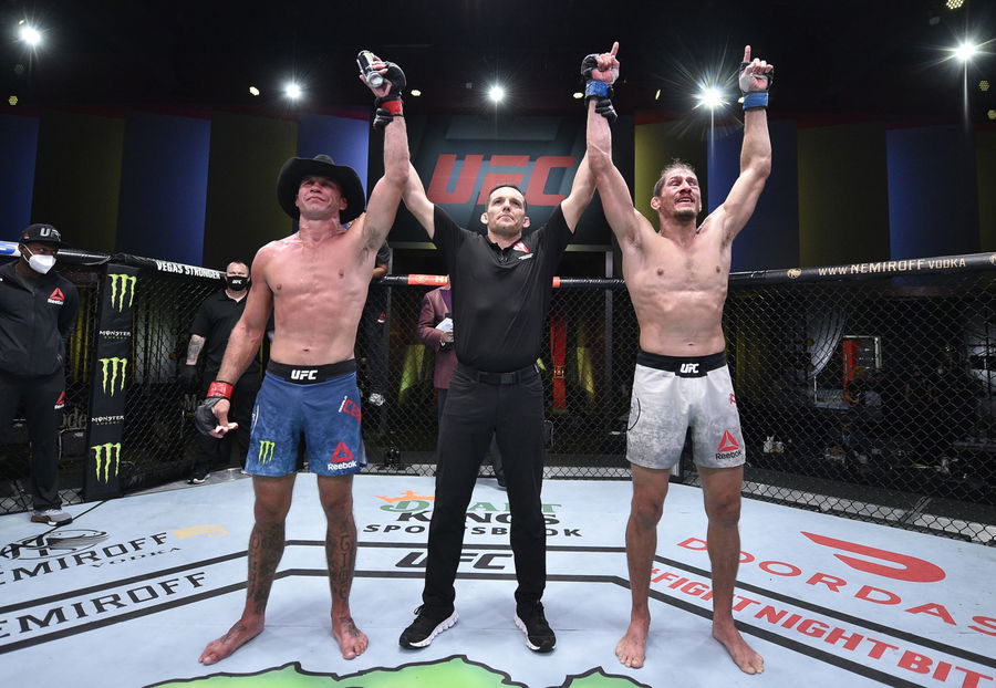 LAS VEGAS, NEVADA – SEPTEMBER 19: Donald Cerrone (L) and Niko Price (R) battle to a draw in their welterweight bout during the UFC Fight Night event at UFC APEX on September 19, 2020 in Las Vegas, Nevada. (Photo by Chris Unger/Zuffa LLC)