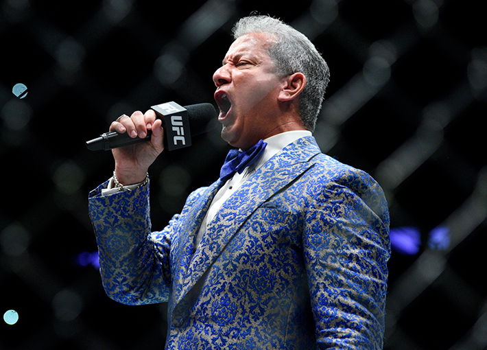 The long-time UFC employee is virtually synonymous with the UFC’s pay-per-view model, and he’s been involved with the company for many years. ‘The veteran voice of the octagon’ came in back in 1996 and has undergone many evolutions. His signature catchphrases and moves such as the ‘Buffer 180’ or the Buffer 360’ see him take command of the cage when announcing.