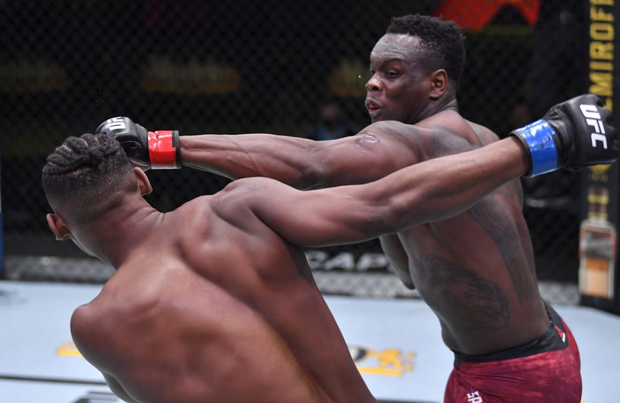 LAS VEGAS, NEVADA – DECEMBER 05: (L-R) Jamahal Hill punches Ovince Saint Preux in a light heavyweight bout during the UFC Fight Night event at UFC APEX on December 05, 2020 in Las Vegas, Nevada. (Photo by Chris Unger/Zuffa LLC)