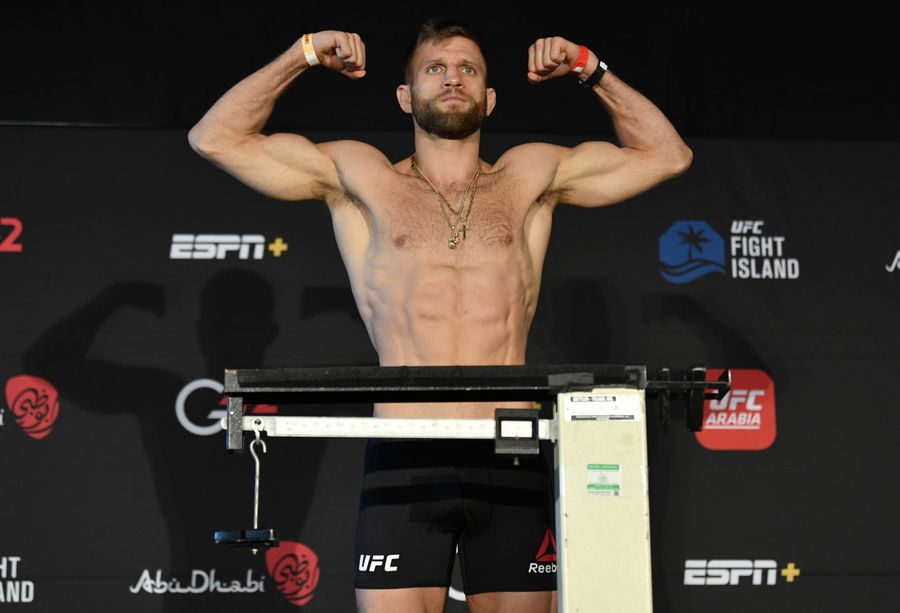 ABU DHABI, UNITED ARAB EMIRATES – JANUARY 15: Calvin Kattar poses on the scale during the UFC weigh-in at Etihad Arena on UFC Fight Island on January 15, 2021 in Abu Dhabi, United Arab Emirates. (Photo by Jeff Bottari/Zuffa LLC)